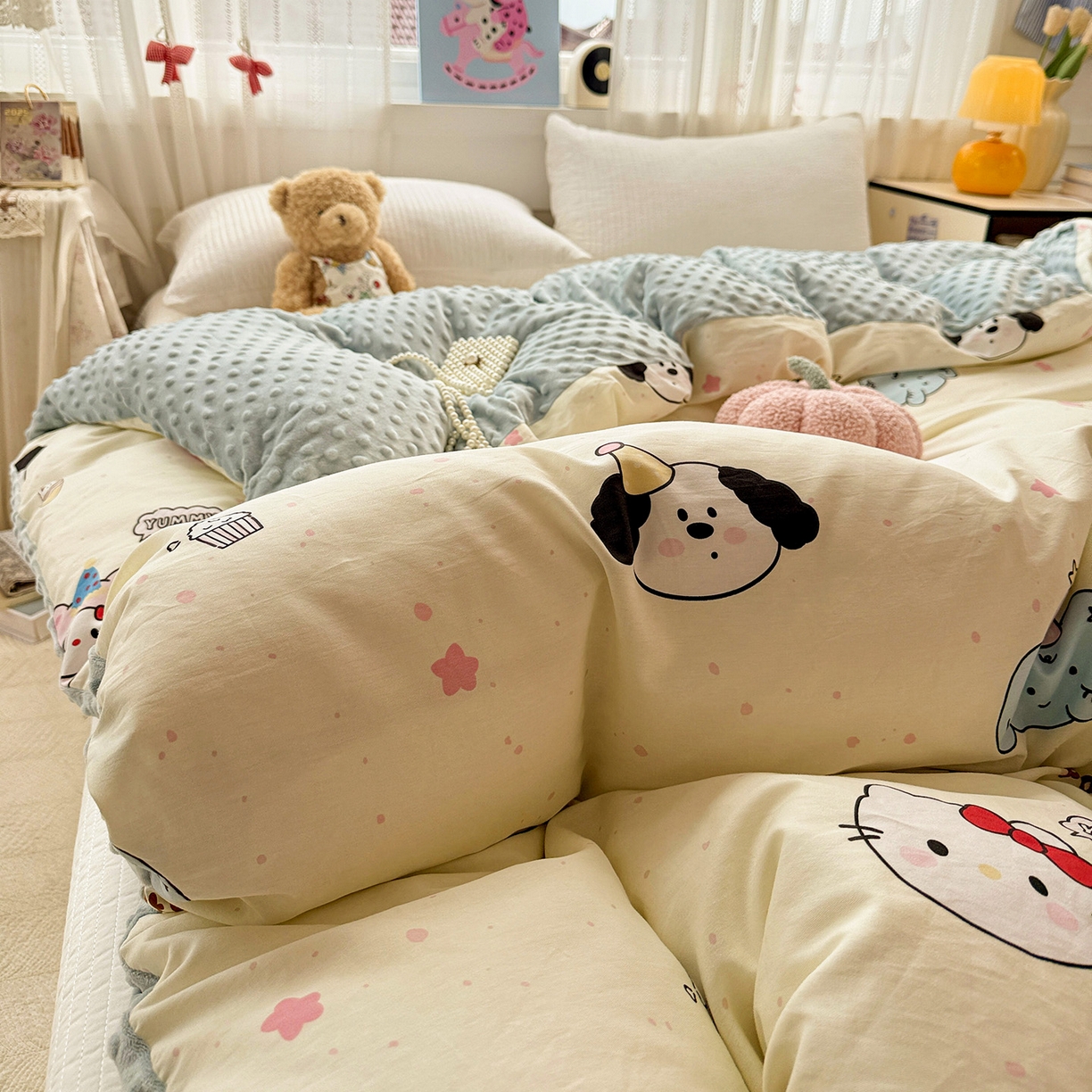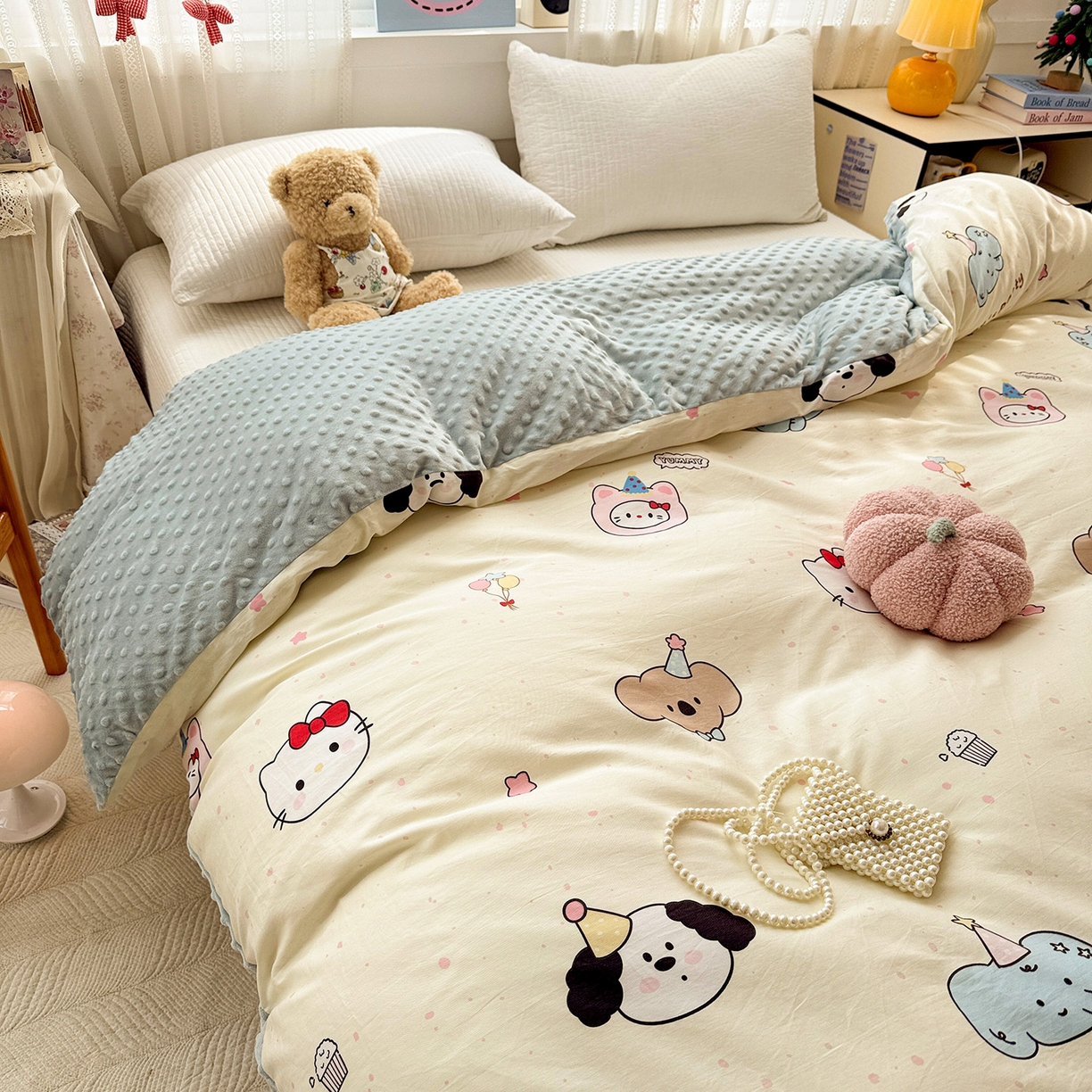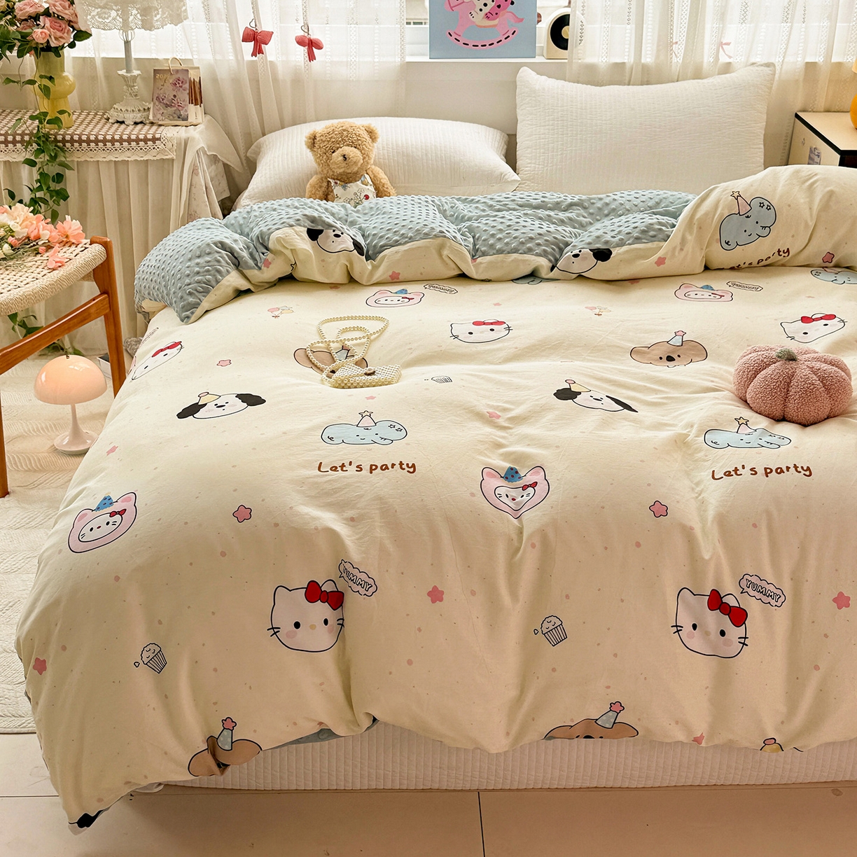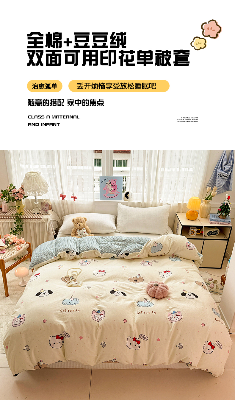 - - 2025新款全棉纯棉卡通床盖学生宿舍三件套上下铺三件套