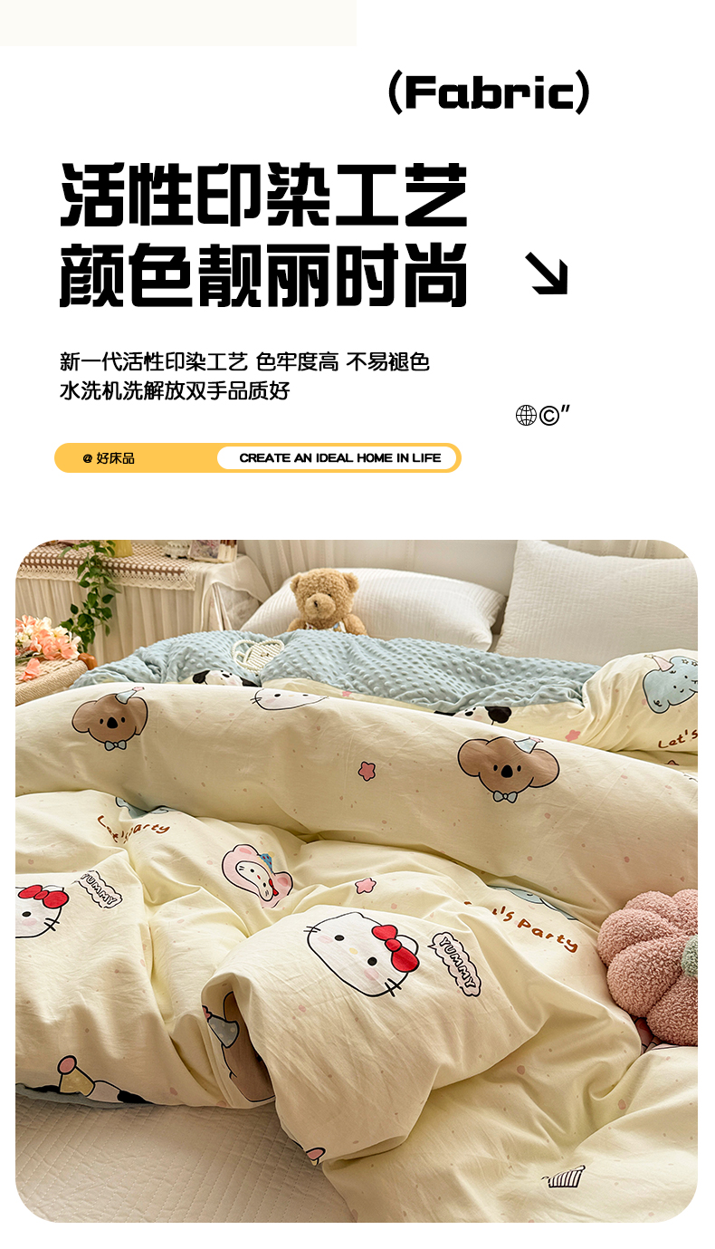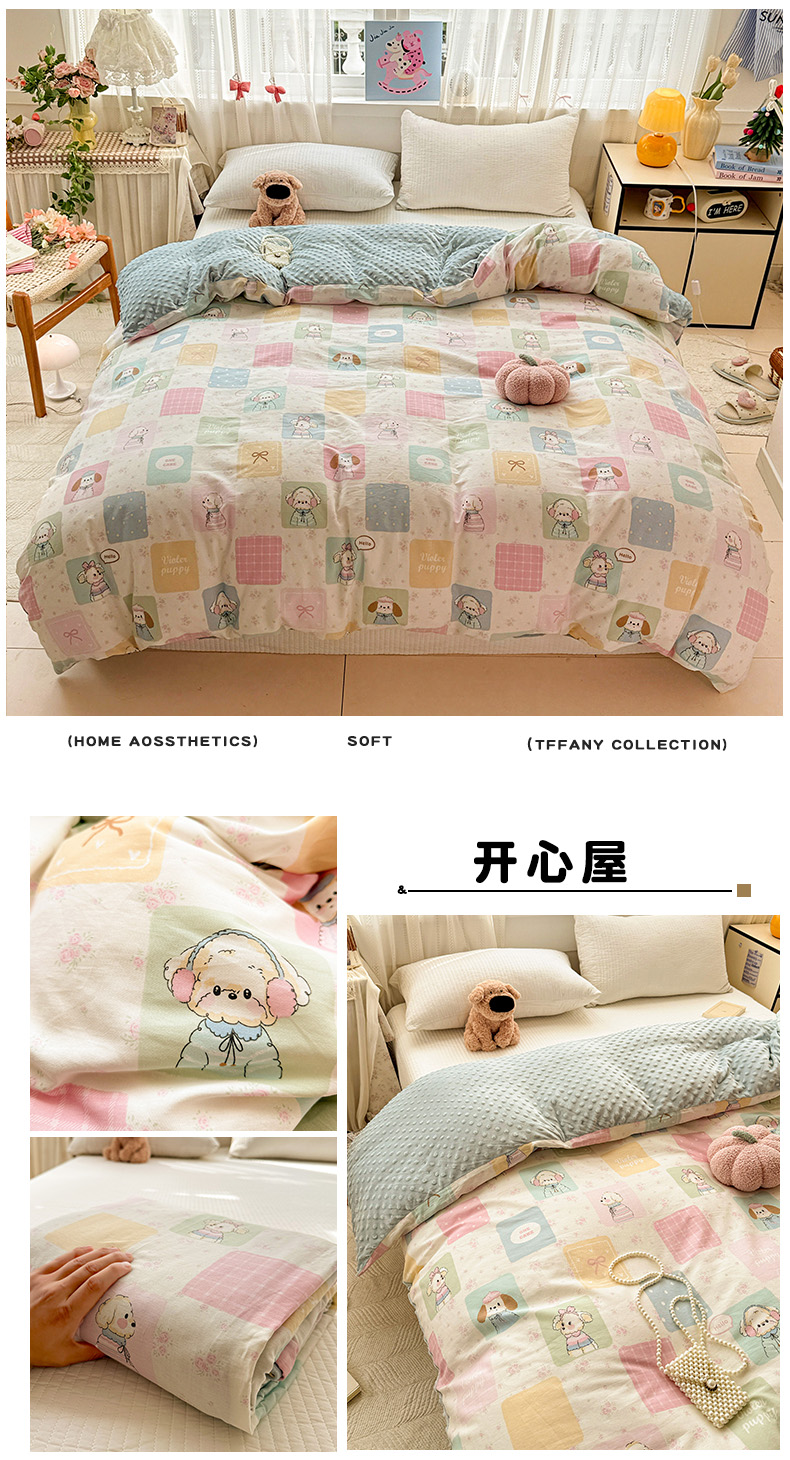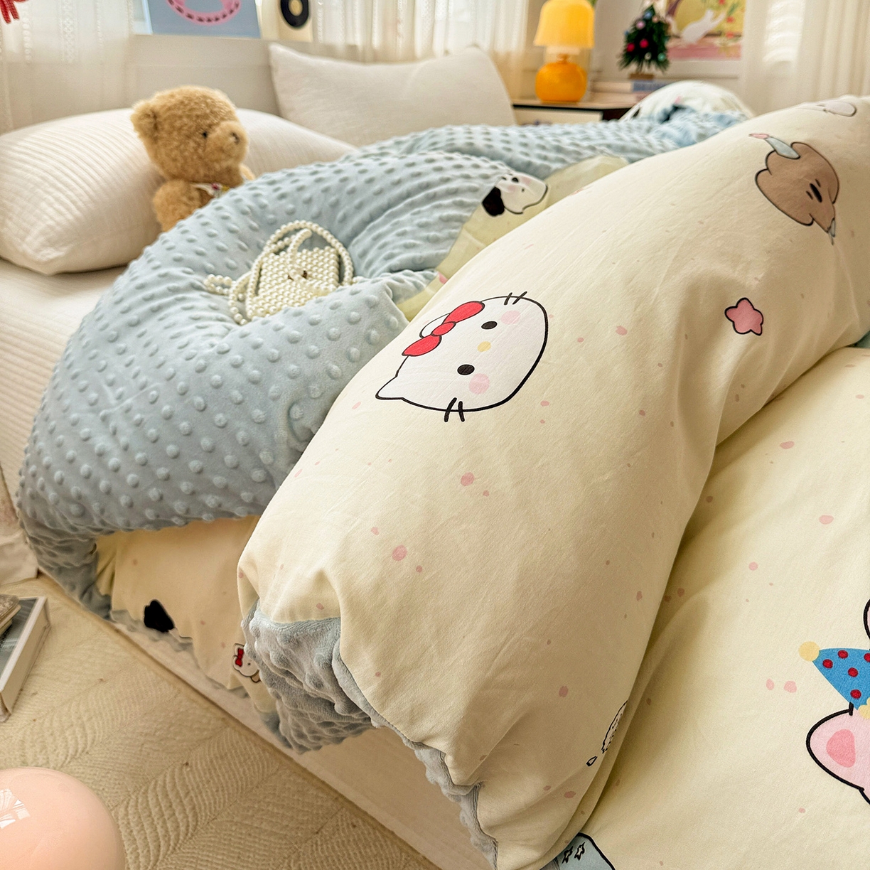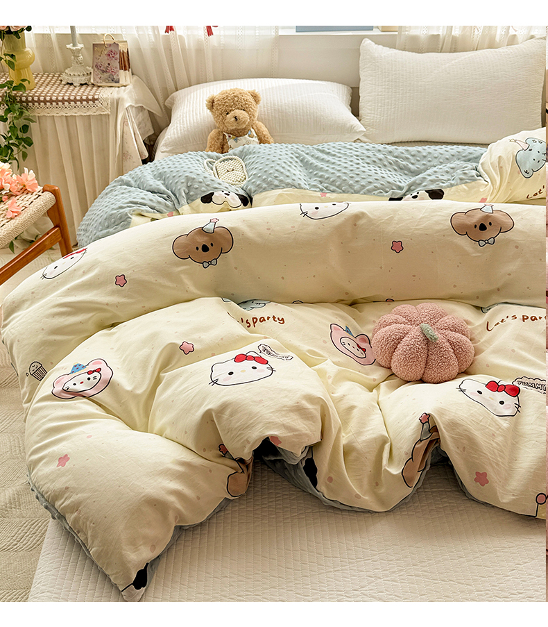 - - 2025新款全棉纯棉卡通床盖学生宿舍三件套上下铺三件套