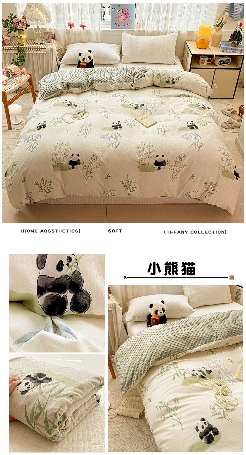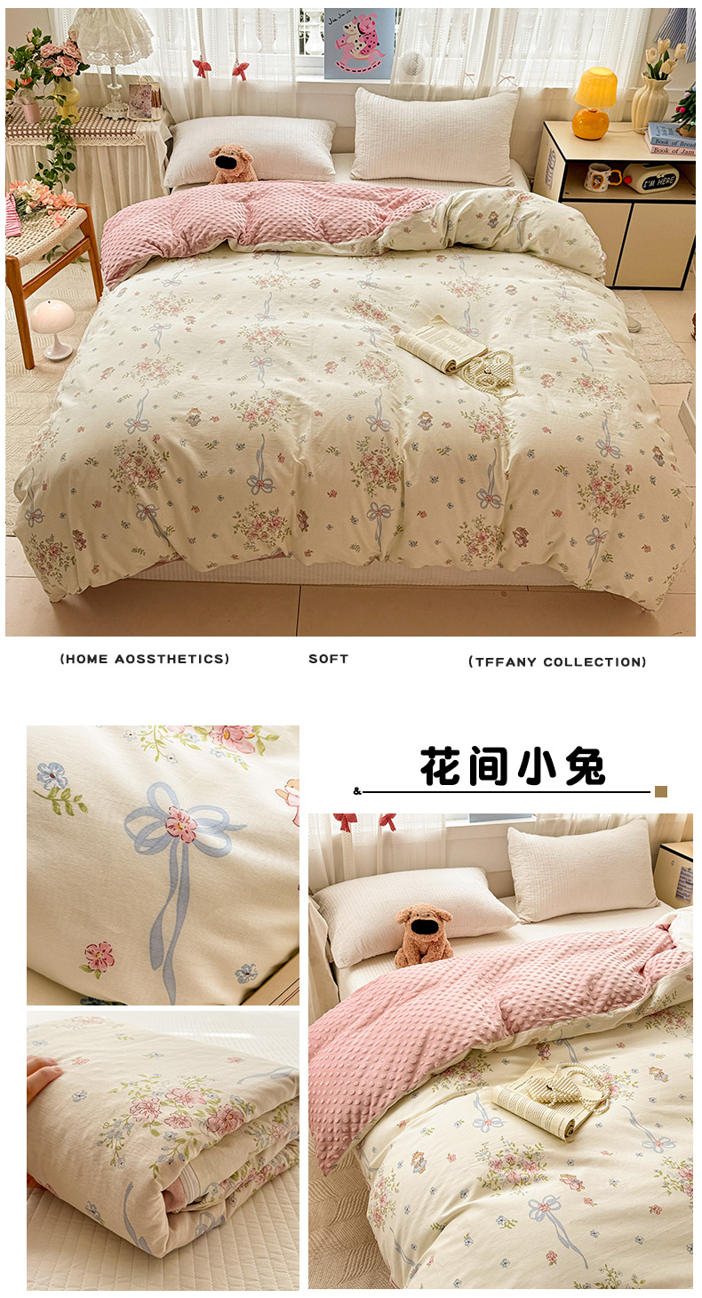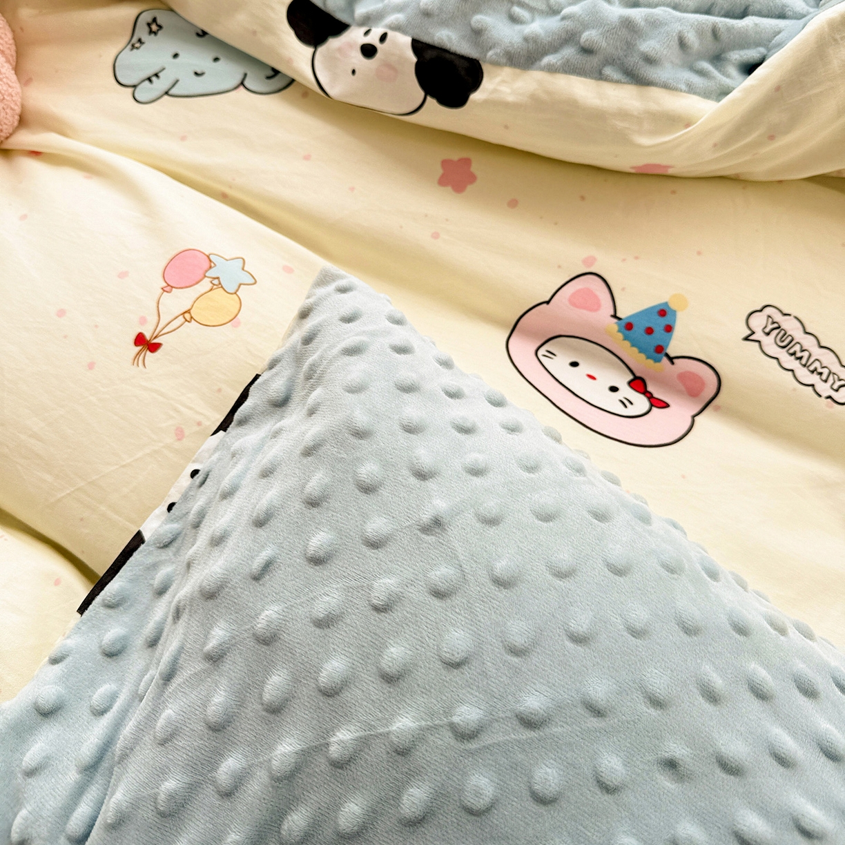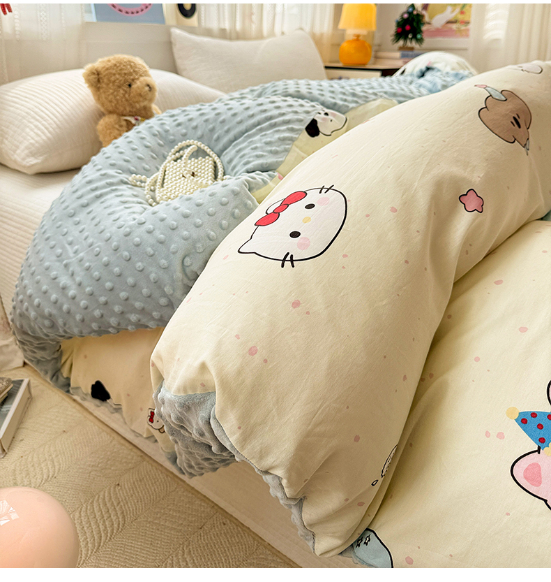 - - 2025新款正面纯棉反面宝宝绒印花夹棉砂洗床盖