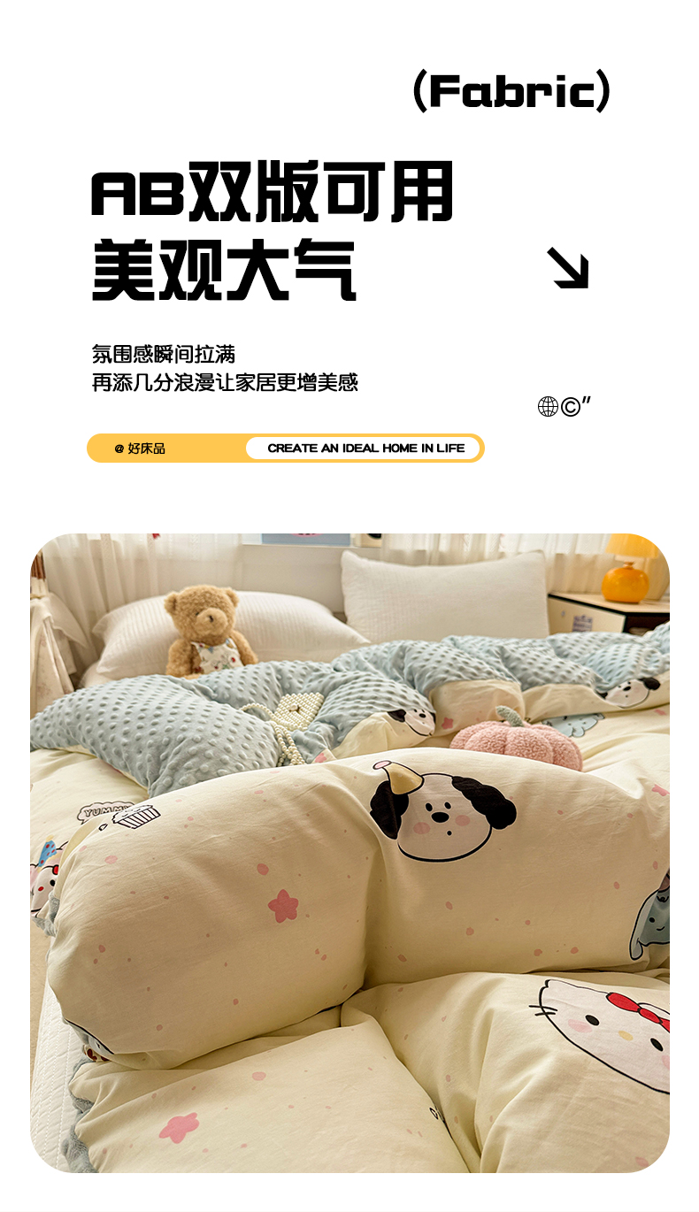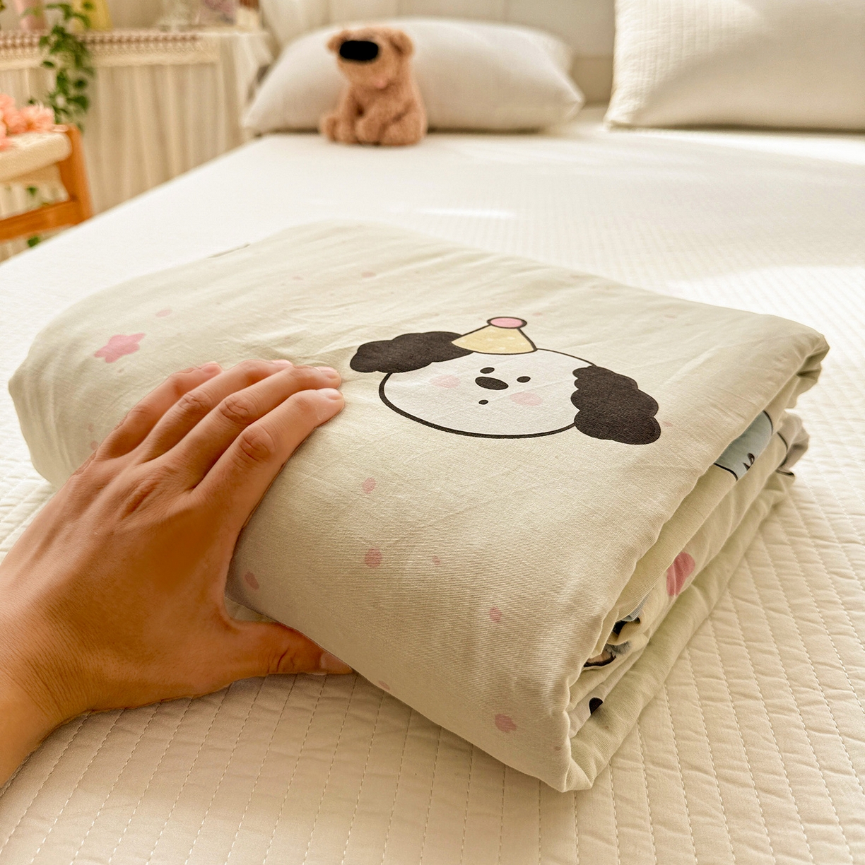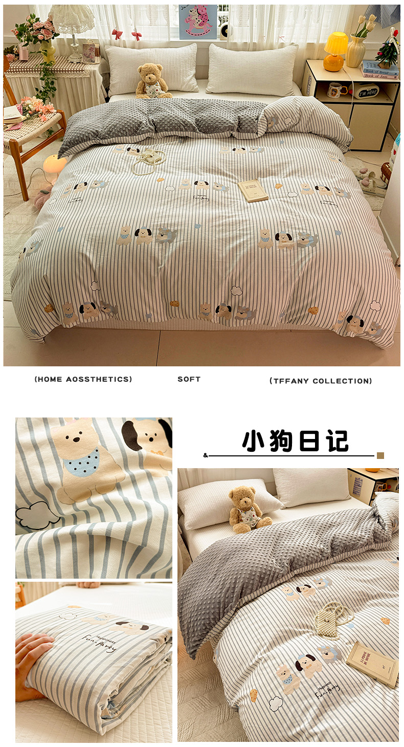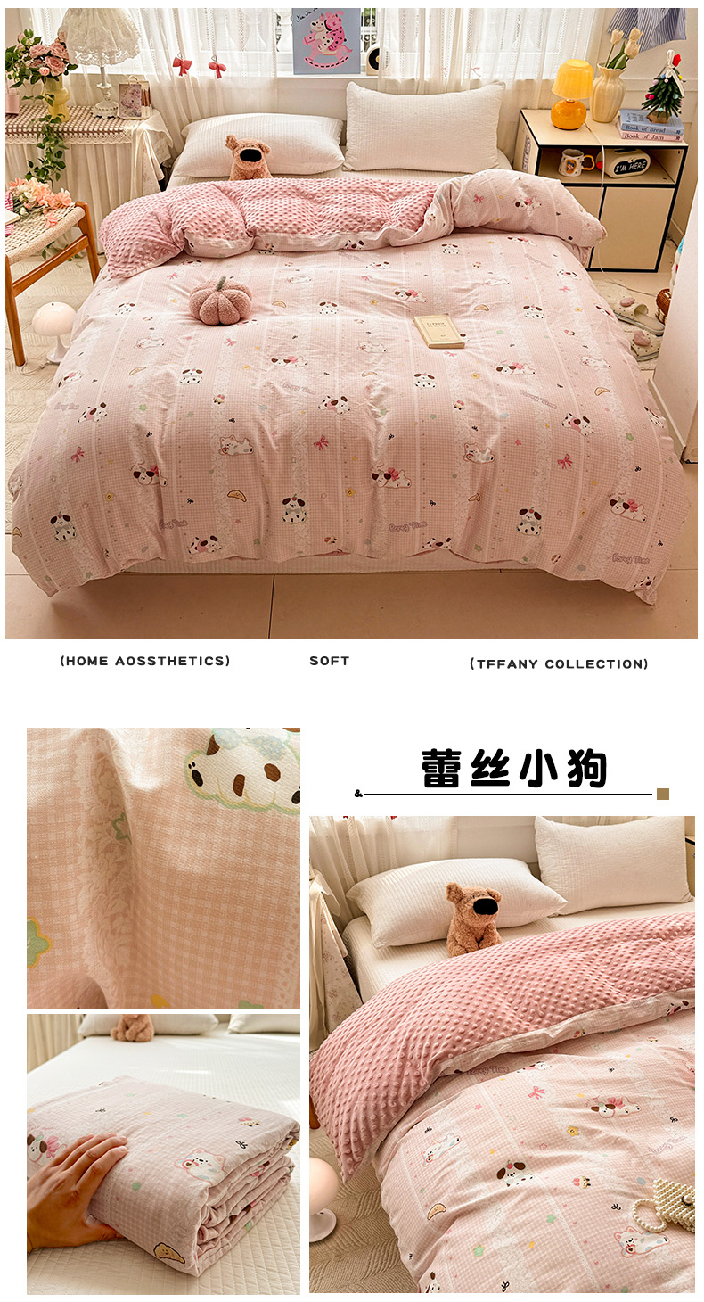 - - 2025新款正面纯棉反面宝宝绒印花夹棉砂洗床盖