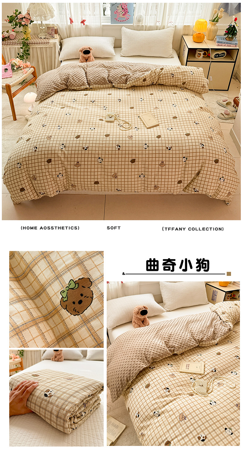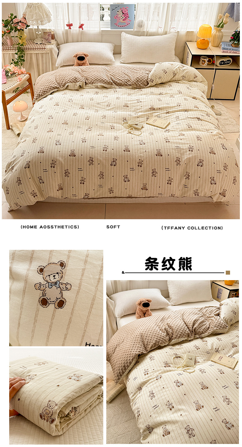 - - 2025新款60S华夫格小熊刺绣纯棉床盖四件套